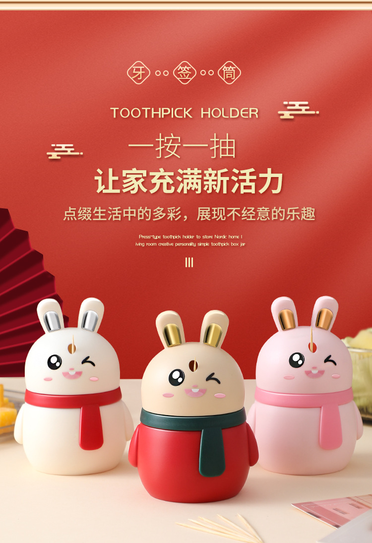 家用卡通牙签筒创意自动牙签盒可爱小兔子按压式牙签罐牙签瓶批发